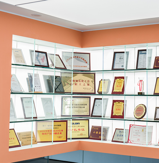 Het bedrijf draagt de eretitels van Zhejiang Province's Science and Technology Small and Medium Enterprises, Zhejiang Province's Cloud Enterprises, Zhejiang Province's Postdoctoral Workstation, Ningbo City's "Specialized and New" Enterprises, Ningbo City's Engineering Technology Center, Ningbo City's Equity Exchange Center Listed Enterprises, Cixi City's Green Factory en Cixi City's Top 50 Per-acre Output. Het bedrijf heeft 123 patenten van verschillende typen, is lid van de China Lighting Appliance Standardization Committee, neemt deel aan 2 nationale normen en 7 groepsnormen, beschikt over TÜV- en SGS-getuigenislaboratoria en heeft een gezamenlijk onderzoeks- en ontwikkelingscentrum voor slimme verlichtingsproducten en een stageplek voor "industrie, universiteit en onderzoek" opgericht met de Shanghai University of Applied Technology.